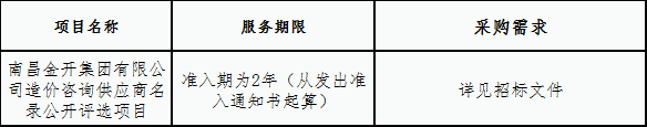 1、項目名稱:南昌金開集團有限公司造價咨詢供應(yīng)商名錄公開評選項目
