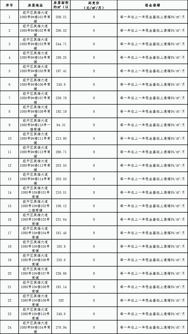 一、競拍人(含個人及企業(yè),下同)應(yīng)按主拍人提出的加價幅度進行競拍,競拍價按每月每平方米報價,房屋競拍成功后按租期最后一年季度租金金額繳納合同履約保證金中標人一周內(nèi)簽訂合同,履約保證金及預(yù)繳首年一個季度租金與季度物業(yè)費在簽訂合同之日內(nèi)一次性交清,否則做廢標處理。二、本次競拍采用有底價、有聲競拍的形式。競拍開始后,首次叫價為增幅后報價,不低于8元/平方米/月,每次報價增幅最低不低于0.5元/平方米/月的整倍數(shù),如出現(xiàn)競拍人僅舉牌不叫價情況,即默認為在上一輪叫價基礎(chǔ)上增加0.5元/平方米/月,否則應(yīng)價無效。當最高價(超過底價)未有人追加競價時,主拍人對該價重復(fù)三次報價,第三次重復(fù)報價無人應(yīng)價,由主拍人宣布成交。本次競拍取達到底價的最高報價人作為中標人,中標人若放棄中標人權(quán)力,不按排名順延中標人,我司將做廢標處理。