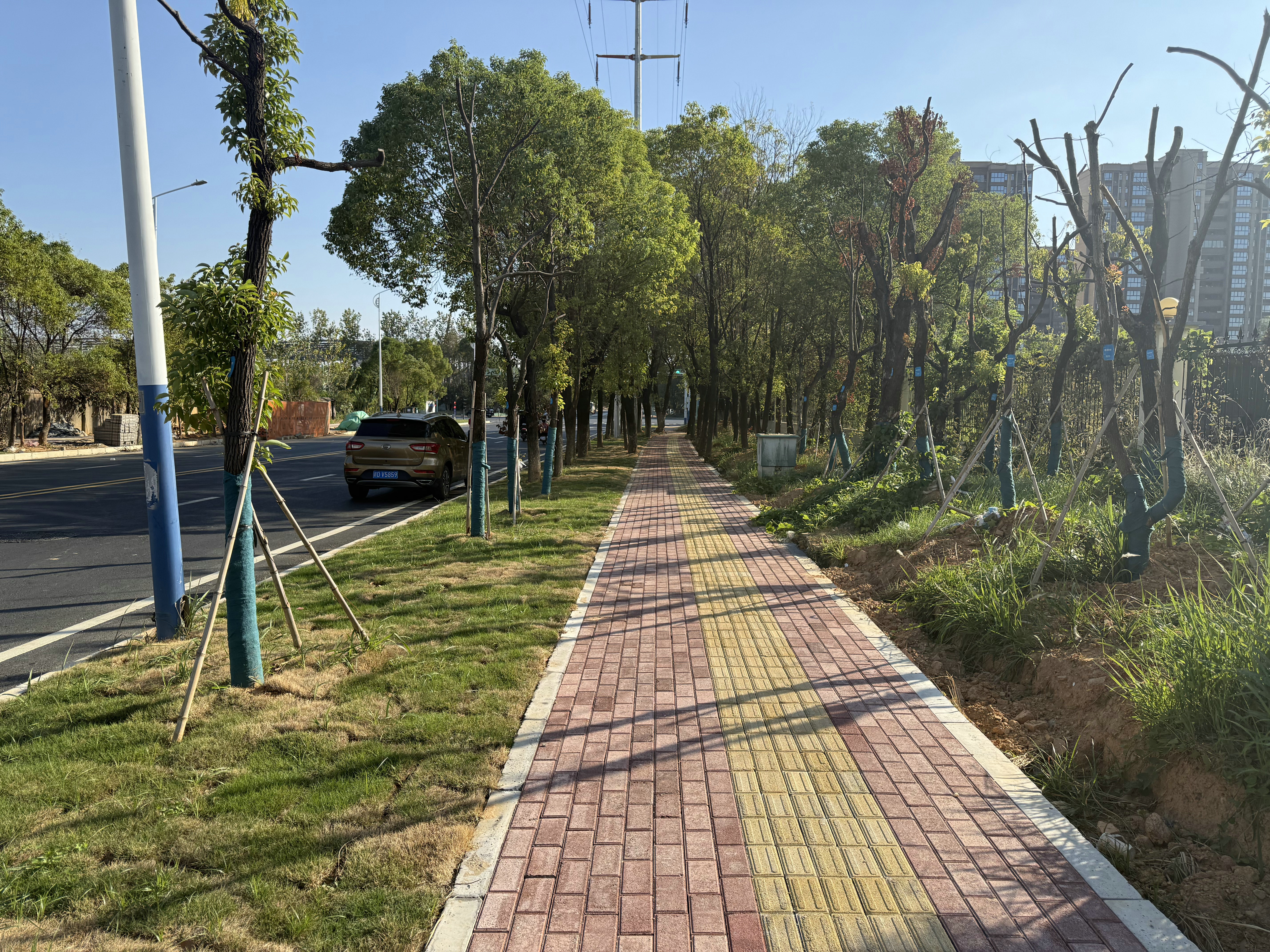 此次提升改造涵蓋道路、排水、交通及綠化等多個方面,推動道路功能實現從“基本通行”到“優質出行”的全面跨越。工程重點圍繞三項舉措展開:專項治理路面病害,并且全線加鋪10厘米瀝青,顯著提升行車平穩度;系統排查并修復雨污水管道,解決堵塞滲漏問題,保障雨季排水通暢;增設兩側人行道,并結合綠化景觀打造“路在綠中、人在景中”的出行環境。