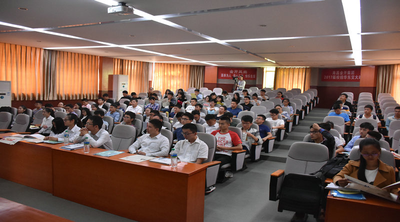10月9日,金開集團人力資源部來到華東交通大學土建大樓學術報告廳,開啟了2016年金開集團第一場校園宣講會。經過前期的宣傳與預熱,現場共有149名2017年應屆畢業生到場報名,宣講現場座無虛席。