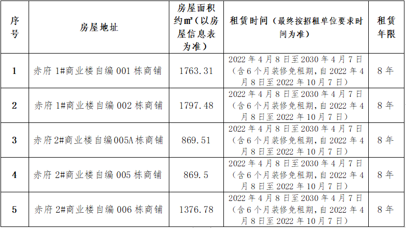 赤府安置房小區獨棟商鋪租賃競拍公告