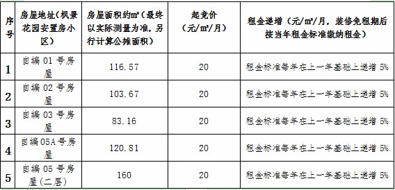 楓景安置房小區(qū)房屋租賃競拍公告