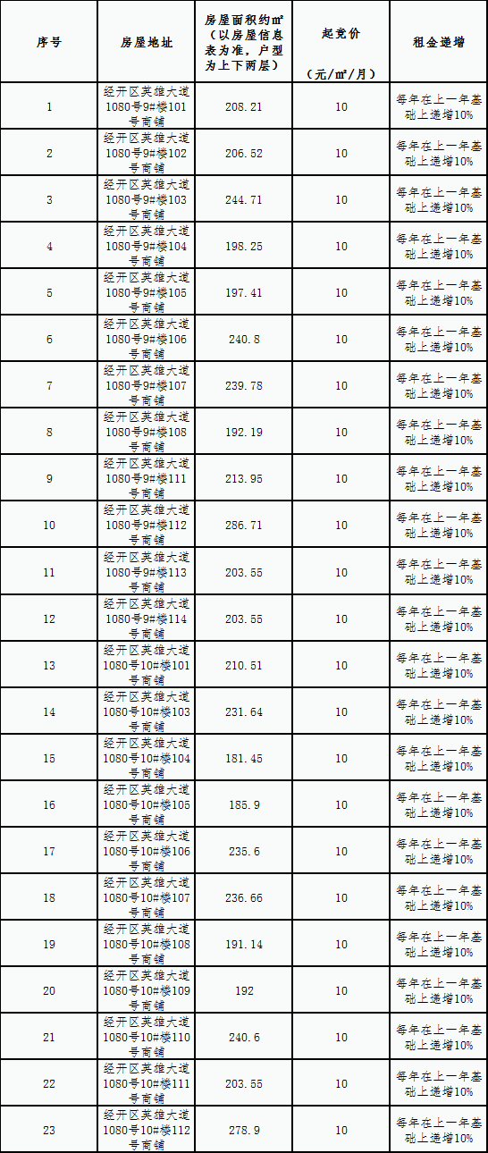 二、本次競拍采用有底價、有聲競拍的形式。競拍開始后,首次叫價為增幅后報價,不低于10.5元/平方米/月,每次報價增幅最低不低于0.5元/平方米/月的整倍數(shù),如出現(xiàn)競拍人僅舉牌不叫價情況,即默認為在上一輪叫價基礎(chǔ)上增加0.5元/平方米/月,否則應(yīng)價無效。當最高價(超過底價)未有人追加競價時,主拍人對該價重復(fù)三次報價,第三次重復(fù)報價無人應(yīng)價,由主拍人宣布成交。本次競拍取達到底價的最高報價人作為中標人,中標人若放棄中標人權(quán)力,不按排名順延中標人,我司將做廢標處理。