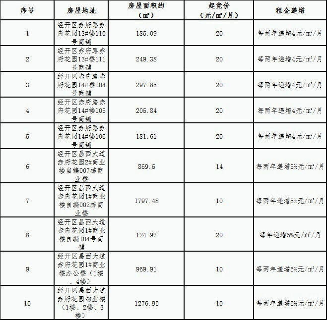 赤府花園安置房小區房屋租賃競拍規則