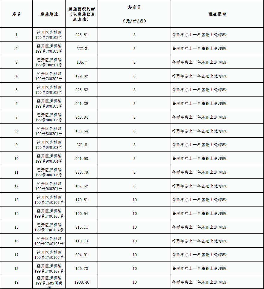 3、根據(jù)房屋信息表編號(hào)按順序招租(原則上不隔開(kāi)租賃),且所有商務(wù)條件均優(yōu)先于承租面積大的承租戶,以繳納相應(yīng)保證金時(shí)間排序。