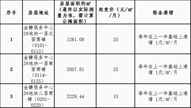 金贛服務中心2#地塊一、二層商鋪租賃競拍規則