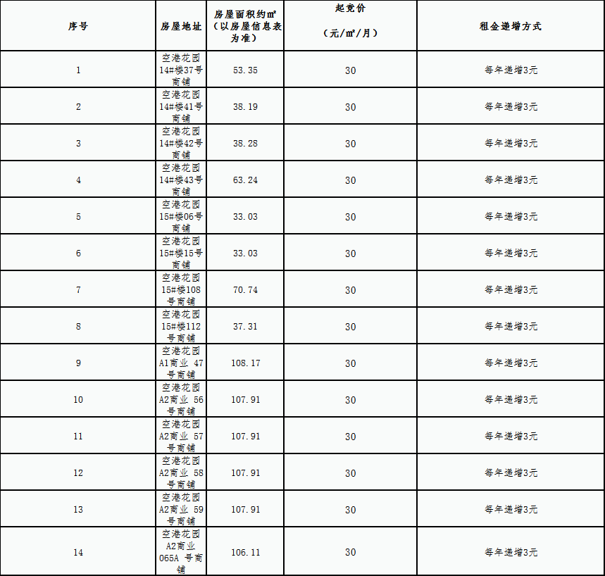 注:每間商鋪的租賃經營權均為單獨競拍。