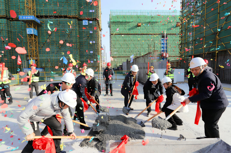 封頂儀式上,程振華與各參建單位負責人共同為大樓主體澆筑最后一方混凝土,金開·嵐苑項目首棟單體建筑主體結構正式完成封頂,標志著項目建設邁入新階段。從一張張施工藍圖到喜封金頂,金開·嵐苑的美好形象正按理想的藍圖,被一筆筆勾勒出來。