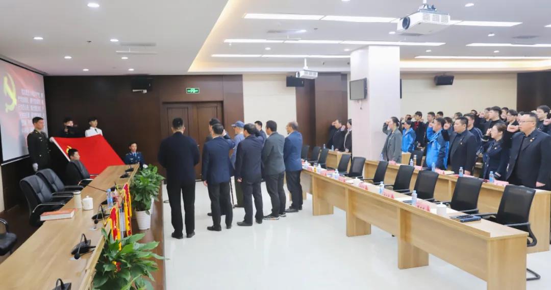 最后,集團全體黨員重溫入黨誓詞,謝榮華與印老帶領大家一起面對黨旗、高舉右手,一字一句、字字千鈞,嚴肅認真、慷慨激揚地莊嚴宣誓,重溫入黨初心使命,激勵同志們不忘初心、牢記使命、永遠奮斗,為黨為國、為集團高質量發展再立新功。