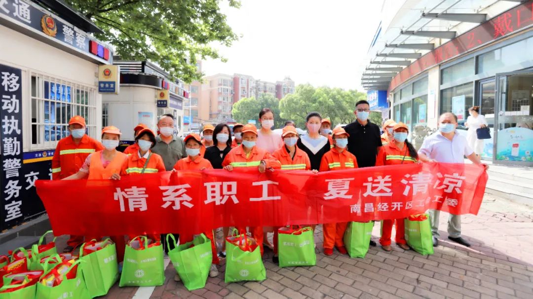 7月21日,南昌市總工會副主席張小芳一行來到經開區慰問一線環衛工人,經開區工會主席雷惠珍、專職副主席劉燕,金開集團黨委副書記、副總經理、工會主席袁扣華,管護公司班子成員及集團工會相關人員陪同。