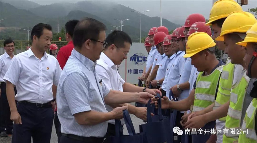 在項目建設(shè)現(xiàn)場,慰問組看望了正冒雨堅守崗位的一線黨員、流動黨員和施工人員,在送去黨委節(jié)日關(guān)懷和問候的同時,還為他們送去了礦泉水、金銀花露、西瓜及防暑降溫藥品等慰問品,并叮囑他們務(wù)必注意高溫陰雨天氣施工安全,在保障安全和質(zhì)量的前提下,繼續(xù)發(fā)揚“5+2”、“白加黑”精神,加快工程建設(shè)進(jìn)度,凝心聚力促項目早日完工。